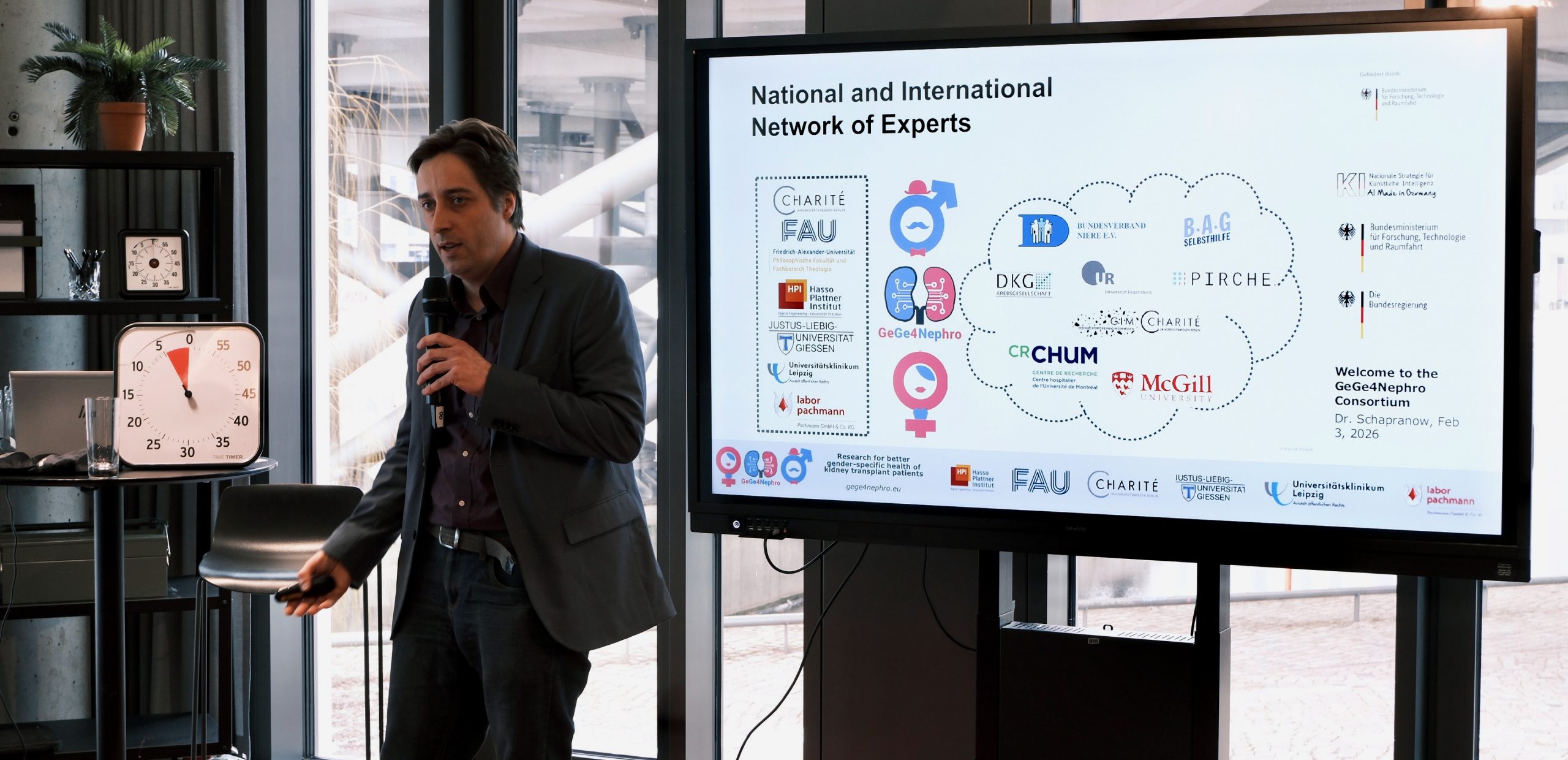 The kick-off event in Berlin provided a high-energy platform for the GeGe4Nephro team to present our interdisciplinary, international consortium and a roadmap for the coming months. During our presentation, we addressed the „gender data gap“ in kidney research. Although biological sex and social gender significantly influence the progression of CKD and the success of transplants, these factors are not fully considered in the standards of care today. As a result, GeGe4Nephro aims to implement machine learning models to analyze complex longitudinal transplant datasets to support the discovery of sex-specific treatment differences. The GeGe4Nephro team was represented in this event by Antje M. Richter (JLU), Fareeha Afzal and Matthieu-P. Schapranow (HPI).